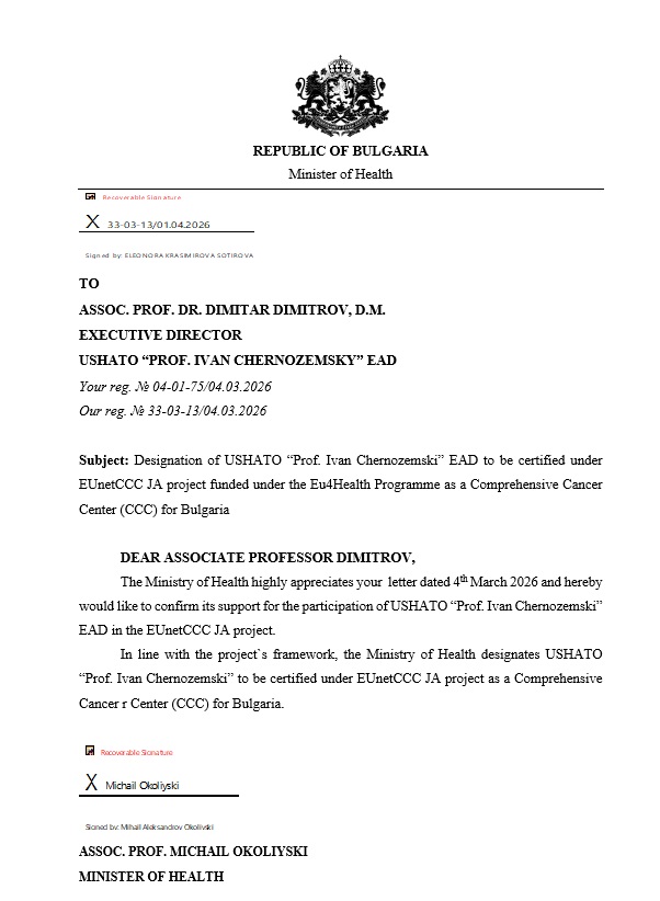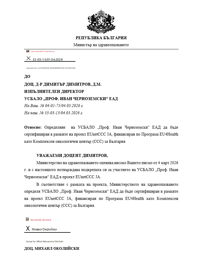 Отделението по образна диагностика е оборудвано със супер модерен, напълно дигитален мамограф, с най-високо качество на изображението и до 30% по-ниски дози на облъчване на рентгеновите лъчи. Образното изследване гарантира прецизна и детайлна диагностика на рака на млечната жлеза.